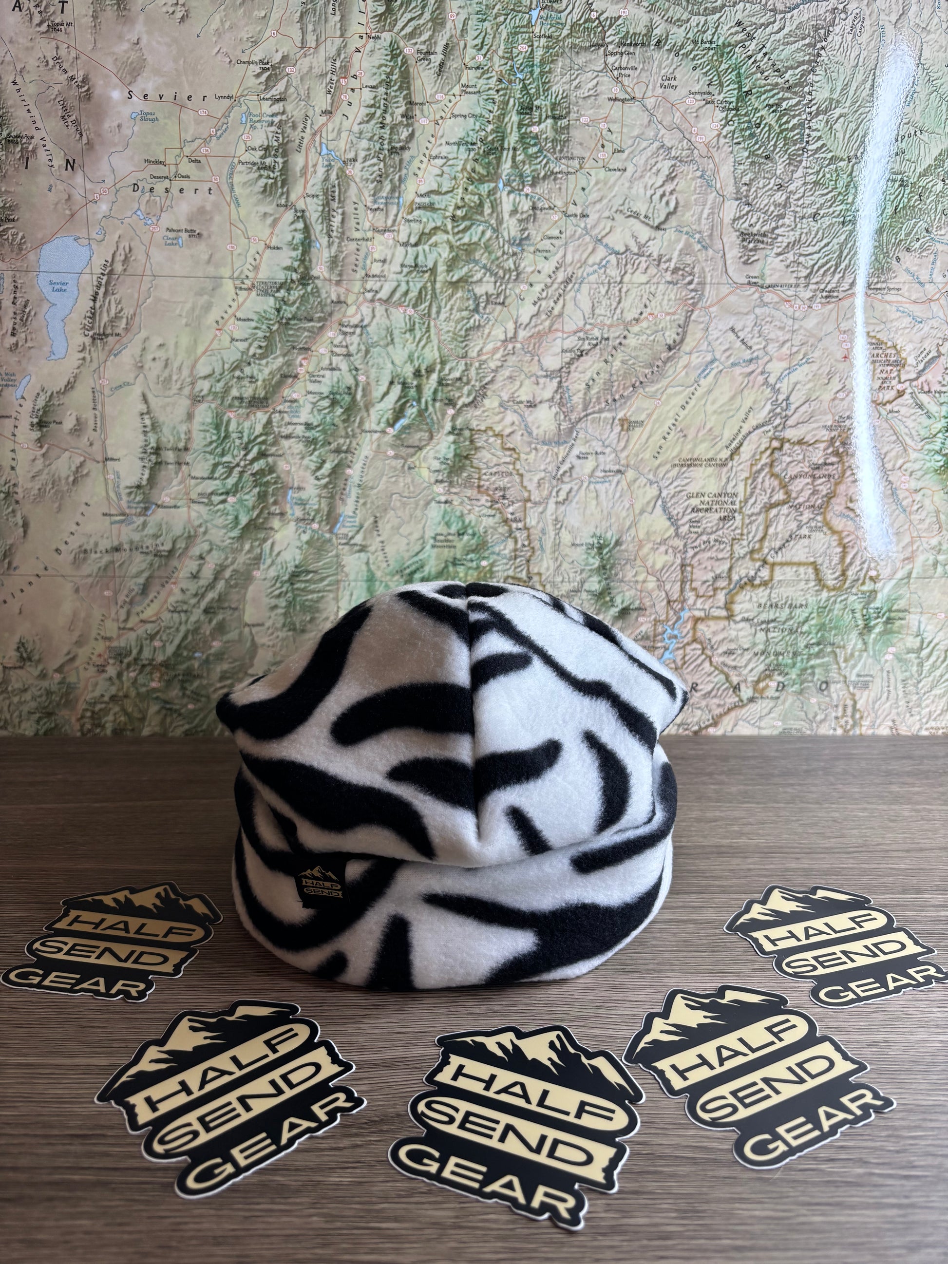 Our custom 100% Anti-Pill fleece beanie design in our Zebra color-way.